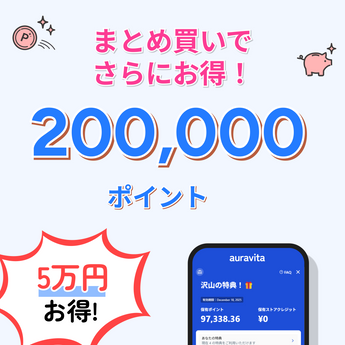買って貯まる、使ってお得。Auravitaではより便利に利用いただけるよう、ポイント還元を行っています。