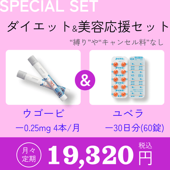 ウゴービ0.25mg 4本とユベラ(ビタミンE)30日分がセット。