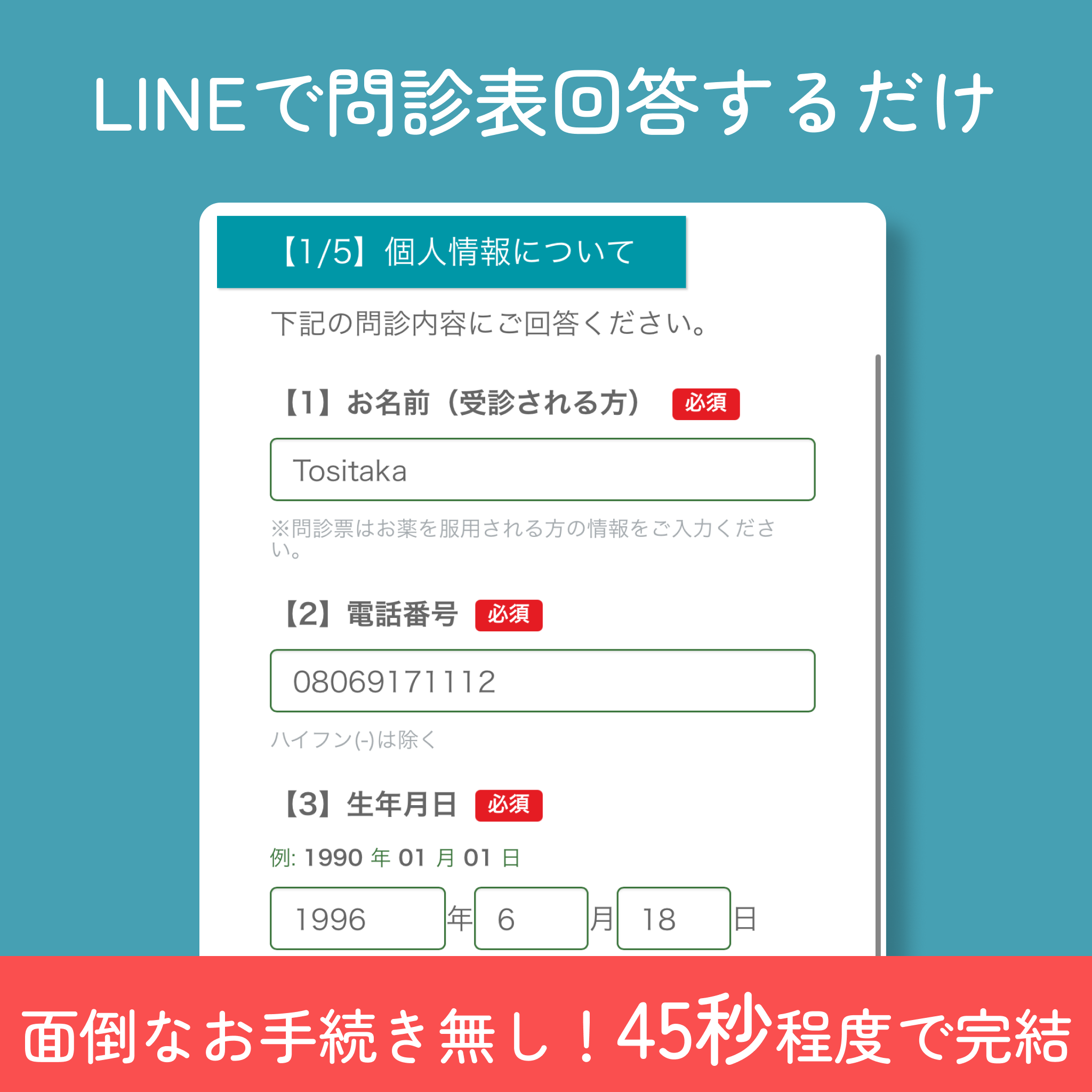 全部オンライン、スマホで完結。3時までの決済完了&問診票の提出いただいた場合、原則当日発送。ヤマト運輸のクール便で配送を行っています。
